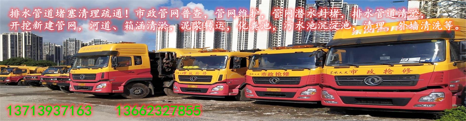 市政排水排污管道清淤、箱涵清淤、泵站、河道、渠道清淤,化糞池、隔油池、污水池清理,外墻清洗、管道疏通、抽水排澇、管道開挖非開挖修復、給排水管道預埋、